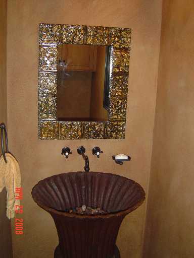 Bathroom had a white pedestal sink. Replaced unit with old iron Urn and matching fixtures :)